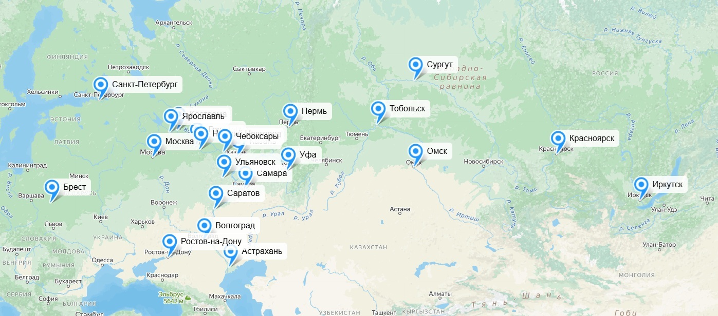 Главная > Отдых в России и странах СНГ > КРУИЗЫ Россия и страны СНГ Круизы по рекам, озерам и морям России Карта городов отправления